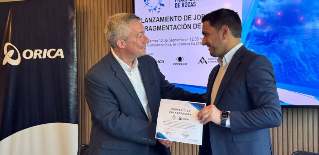 Durante la ceremonia, el Instituto de Ingenieros de Minas de Chile (IIMCh) y Orica firmaron un acuerdo de cooperación y auspicio, representados por el vicepresidente del IIMCh, Pedro Pablo Pozo, y el gerente general de Orica Chile, Mark de Castro. Este convenio marca el inicio de una colaboración orientada a fortalecer la innovación y la transferencia de conocimiento en la industria.